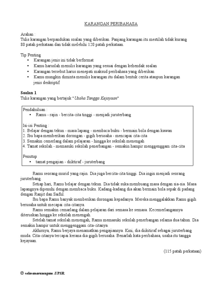 KARANGAN RESPONS TERBUKA BAHAGIAN B. CONTOH MENJAWAB SOALAN - Bahagian C - Peribahasa Melayu seperti kacang lupakan kulit memberi nasihat supaya jangan melupakan budi insan yang pernah berjasa. Contoh Dan Latihan Karangan Bahasa Inggeris UPSR I.